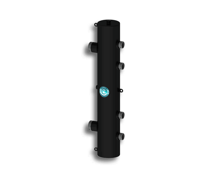 Гидравлический разделитель Север R-140К2 – имеет круглое поперечное сечение, 2 контура гидравлического разделителя, обладает номинальной мощностью 140 кВт. Модель используется в отопительных системах, которые имеют несколько контуров отопления. Каждый контур имеет свой насос, тем самым обеспечивая баланс давления и расхода. Также с помощью гидрострелки осуществляется отделение шлама и выпуск воздуха. Помимо выполнения важной функции, устройство имеет простую конструкцию и произведено из углеродистой стали.